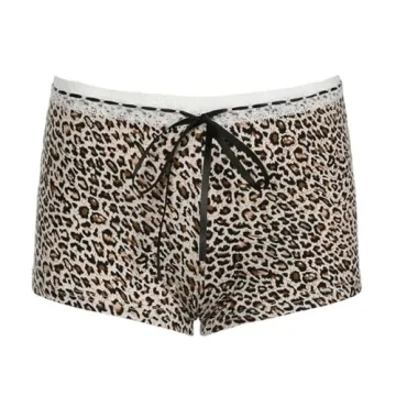 Hesaco Y2K Beach Shorts for Women - Sexy Leopard Print Shorts with Lace Trim