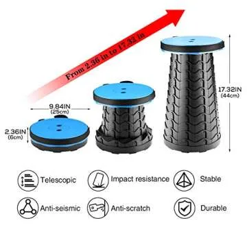 Show more Introducing the ultimate solution for on-the-go seating, our innovative Portable Telescoping Stool! Crafted with precision from high-strength nylon and PA66 material, this stool is not only durable but also remarkably safe and stable. With a unique fish scale design, the stool's structure boasts an impressive load capacity of up to 400lb, making it suitable for a variety of users. This is not just another stool; it features a patented design that incorporates dual buckles allowing effortless height adjustments and easy closures, an enhancement that sets it apart from the competition.