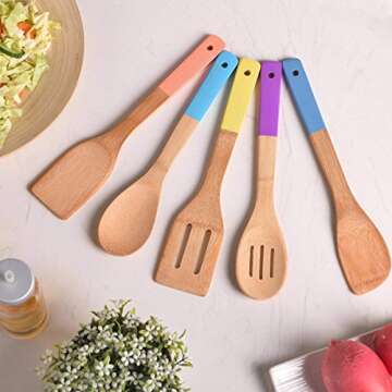 Heselian Premium Kitchen Cooking Utensils Bamboo Spoon Spatula Set - 6 in 1