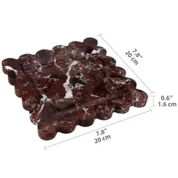 HESHIBI Square Marble Decorative Tray with Scalloped Edge,Luxury Natural Stone Bathroom Vanity Tray, Dresser Top Perfume Coffee Home Kitchen Sink Tray, Key Trinket Ring Tray (Rosso Lepanto, 8 * 8)