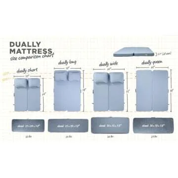 Show moreThe HEST Dually Long Portable Camping Mattress is the ideal companion for all your outdoor adventures, designed with the perfect blend of comfort and convenience. Measuring 78" L x 50" W, this **two-person camping mattress** provides ample space for couples and is spacious enough to accommodate a furry friend too! Engineered using **enhanced memory foam**, it guarantees optimal body support and uniform pressure distribution, ensuring you experience rejuvenating sleep even under the stars. It’s not just a mattress; it’s a gear upgrade that transforms your camping experience into a cozy retreat.
