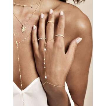 HEVOCY Gold Hand Chain Bracelet for Women: Dainty Ring Bracelet Hand Chain 14K Gold Plated Cubic Zirconia Bracelets Trendy Waterproof Bracelet for Wedding Bridal Jewelry