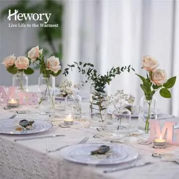 Hewory Glass Clear Modern Vase, Set of 6 - Small Bud Vases for Flowers, Elegant Home Decor Floral Arrangements, Wedding Party Events Centerpieces