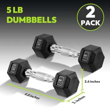 Hex Dumbbell Rubber Encased Dumbbell Strength Training Hex Dumbbell, Hand Weight For Workout & Exercise/Pair of 5LB