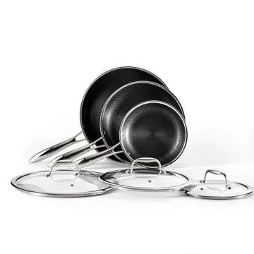 HexClad 12 Piece Hybrid Stainless Steel Cookware Set - 6 Piece Frying Pan Set and 6 Piece Pot Set with Lids, Stay Cool Handles, Dishwasher Safe, Induction Ready, Metal Utensil Safe