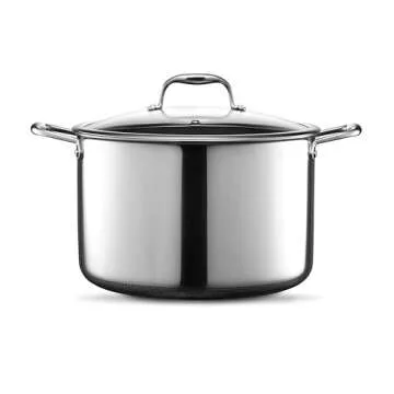 Show moreThe HexClad 10-Quart Stock Pot is a culinary marvel that combines innovative engineering with exceptional performance. With its patented hybrid technology, this pot features a unique tri-ply structure that sandwiches aluminum between two layers of stainless steel. This design enables you to experience the searing power of stainless steel while enjoying the durability of cast iron and the hassle-free cleanup typically associated with nonstick cookware. Whether you're simmering a piping hot batch of chili, steaming fresh seafood, or preparing a hearty stew, the HexClad Stock Pot effortlessly tackles any cooking challenge.
