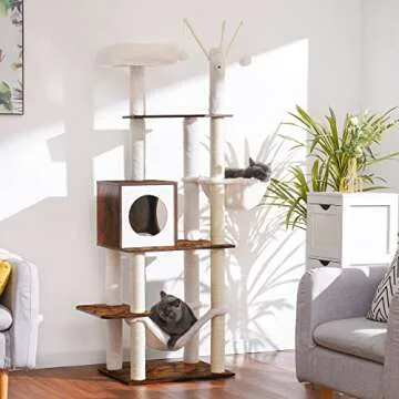 Hey-brother Wooden Cat Tree, 66.1“ Cat Furniture with Scratching Posts, Modern Cat Tower with hammocks, Toys, cat condo, Rustic Brown MPJ120SR