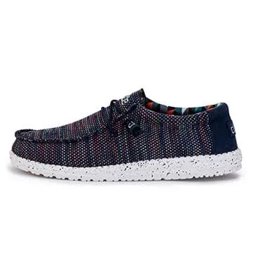 Show moreDiscover the ultimate in comfort and style with the Hey Dude Men's Wally Sox in Blue Orange. These versatile men’s lace-up loafers redefine modern-casual footwear with their unique rounded toe design, allowing complete freedom of movement for your feet. Crafted with a meticulous focus on lightweight construction, each pair weighs less than 6 ounces, making them one of the lightest shoe options available on the market today. Whether you're dressing up for a casual day out or just running errands, these shoes are destined to become your go-to favorite.