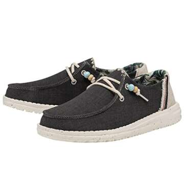 Show moreIntroducing the Hey Dude Women's Wendy Natural Carbon, your new go-to women's shoes that effortlessly combine comfort, lightweight design, and versatile style. With a focus on healthy feet, its unique rounded toe design promotes complete freedom of movement, making these lace-up loafers an essential addition to your modern-casual shoe collection. Weighing in at under 5 ounces, these shoes redefine lightweight footwear, ensuring you can enjoy all-day wear without feeling weighed down.