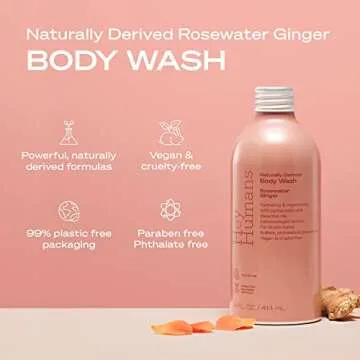 Show moreTransform your shower experience with the Hey Humans Rosewater Ginger Moisturizing Body Wash. Infused with calming rosewater and zesty ginger, this body wash delivers a delightful and refreshing scent that appeals to everyone, regardless of gender. Formulated with a commitment to sustainability, this vegan body wash harnesses the nourishing properties of jojoba seed oil and glycerin, ensuring a gentle yet effective cleansing experience that leaves your skin feeling soft, moisturized, and revitalized. With each use, you not only indulge in a luxurious lather but also embrace a product free from harmful chemicals, pthalates, parabens, sulfates, and silicones.