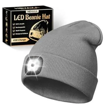 HEYAXA Unisex LED Beanie with Light, Rechargeable Headlamp Hat, Gifts for Christmas, Warm Knitted Cap Birthday Gifts for Men Adults Teens Women Dad Him (Gray)