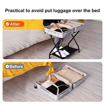 Heybly Luggage Rack,Pack of 2,Steel Folding Suitcase Stand with Storage Shelf for Guest Room Bedroom Hotel,Black,HLR002B2