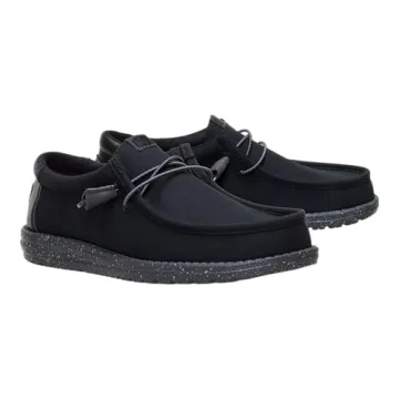 Show moreStep up your footwear game with the HEYDUDE Wally Hex Black/Black – the ultimate slip-on loafers designed for those who appreciate a perfect blend of style, comfort, and practicality. Crafted with a rounded toe and an innovative Flex & Fold outsole, these shoes revolutionize casual footwear. Weighing in at less than 6 ounces, these shoes are surprisingly lightweight, making them an ideal companion for daily activities, travel adventures, and casual outings. Engineered from breathable cotton fabric, they promise a fresh, comfortable experience with every stride.