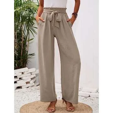 Heymoments Women's Wide Leg Lounge Pants with Pockets Wheat X-Large Lightweight High Waisted Adjustable Tie Knot Loose Comfy Casual Trousers