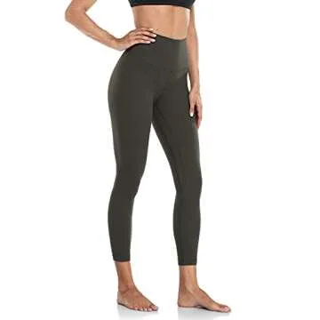 HeyNuts Hawthorn Athletic Women's High Waisted Yoga Leggings, Buttery Soft Workout Pants Compression 7/8 Leggings with Inner Pockets Dark Olive_25'' M(8/10)
