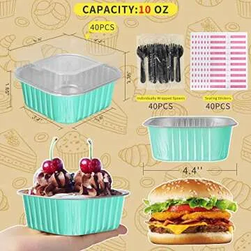 Show more Introducing the ultimate baking solution for dessert lovers and hosts alike! Crafted from high-quality food-grade aluminum foil, these mini cake pans are designed for durability and convenience. Each set comes with snug-fitting lids and spoons, making it a breeze to transport and serve your delicious brownies and other baked delicacies. No more worrying about messy cleanups; simply dispose of these eco-friendly, recyclable pans after use, ensuring your baking adventure remains hassle-free.