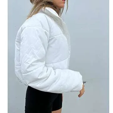 HEZIOWYUN Cropped Puffer Jackets for Women Quilted Lightweight Padded Stand Collar Zipper Coat Bomber Jacket (White,Small)