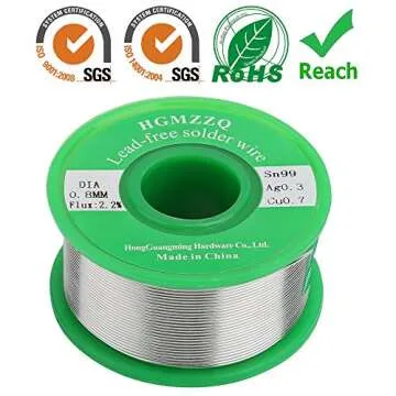 Show moreDiscover the HGMZZQ Lead Free Solder Wire, your ultimate companion for all electrical soldering projects. Crafted with meticulous care, this 100g spool features a rosin core and is made from a premium blend of Tin (Sn99), Silver (Ag0.3), and Copper (Cu0.7). With a diameter of 0.031 inch (0.8mm), this solder wire is ideal for precise applications, ensuring robust connections without the health concerns associated with lead.
