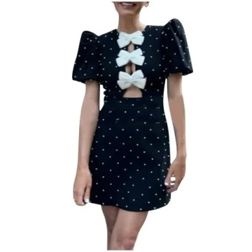 HGps8w Elegant Business Mini Dresses for Women - Sexy Bow Cutout Front Puff Short Sleeve Cocktail Party Office Lady Dress