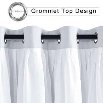Hiasan Greyish White Blackout Curtains with Sheer Overlay - Thermal Insulated Double Layer Window Curtains 52W X 84L