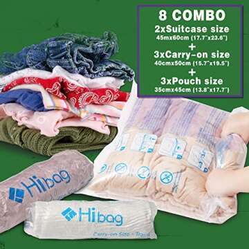 HIBAG 8 Compression Bags, Travel Essentials, Vacuum Packing Space Saver Bags for Cruise Travel Accessories (8-Pack)