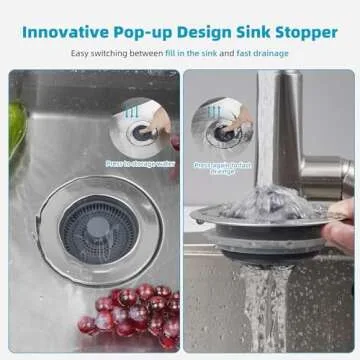 Hibbent 3 in 1 Kitchen Sink Drain Strainer, Stainless Steel Wrapped Shell Drain Stopper Combo, Pop Up Sink Stopper, Anti-Clogging Basket Strainer with Handle for US Standard 3-1/2" Drain