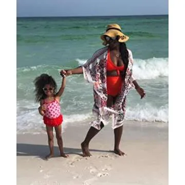 Hibluco Women's Summer Chiffon Floral Kimono Cardigan Long Swimwear Cover Ups