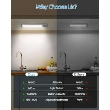 HIBOITEC Under Cabinet Lighting Rechargeable Closet Lights Wireless Motion Sensor Light Indoor, 50 LED Dimmable Magnetic Under Counter Light for Kitchen, Pantry, 2 Pack, Cool White Light, 10 inch