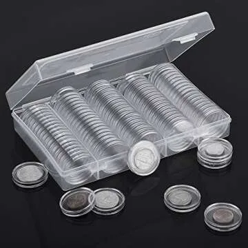 Hicarer 100 Pieces 30 mm Coin Capsules Clear Plastic Silver Dollar Holder for Collectors Round Coin Protectors with Storage Organizer Box for Morgan Silver Dollars Collection Supplies