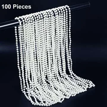 Hicarer 24 Pcs Fake Pearl Necklaces 31.5 inch Bulk 6MM White Faux Bead Necklace for Wedding Bridal Birthday Mardi Gras party Decorations