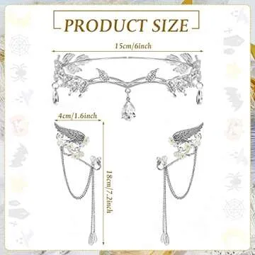 Hicarer 3 Pcs Halloween Rhinestone Leaf Headband Metal Elf Ears Fairy Costume Crown Princess Cosplay for Women(Silver)