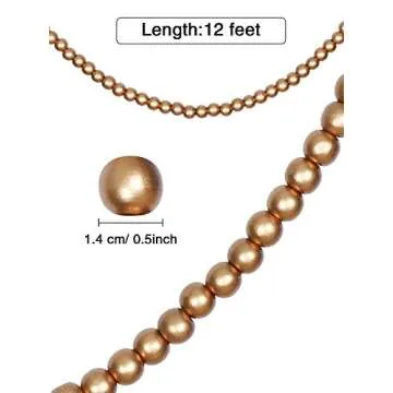 Hicarer Christmas Wooden Bead Garland Wood Bead Garland Christmas Tree Decorations for Christmas Holiday Favors, 12 Feet (Gold)