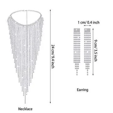 Show moreElevate your accessory game with the Hicarer Tassel Necklace Rhinestones Jewelry Set, designed for the modern woman who loves to shine! This stunning jewelry collection features a beautifully crafted necklace adorned with sparkling rhinestones and delicately paired with matching tassel earrings. Each piece is made from high-quality alloy, ensuring durability while remaining lightweight and comfortable for prolonged wear. The adjustable design allows for a perfect fit on any neck size, making it a versatile addition to your jewelry collection.