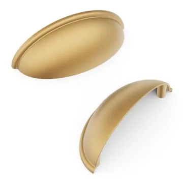 Show more Introducing the Hickory Hardware Heritage 10 Pack Cabinet Cup Pulls, elegantly designed to elevate the aesthetic of your kitchen or bathroom with its timeless brushed brass finish. Crafted by Hickory Hardware, a name synonymous with quality since 1893, each pull features a classic cup design that not only enhances functionality but also adds a touch of sophistication to any space. With an overall length of 3-5/8 inches and a projection of 1-3/16 inches, these cup pulls are perfectly sized for both cabinets and drawers, making them a versatile addition to your home decor.