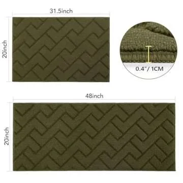 hicorfe Kitchen Rugs and Mats Set: Absorbent & Non-Slip Comfort in Oliver Green