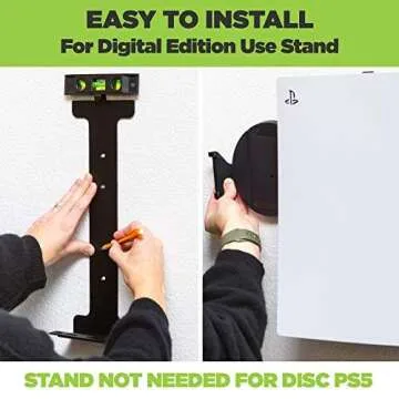 Show more Introducing the ultimate solution for your gaming space: the HIDEit PlayStation 5 Wall Mount. Designed specifically for both PS5 Disc and Digital Editions, this innovative wall mount not only enhances the aesthetics of your setup but also ensures your console is securely held in place. Crafted from heavy gauge, cold-rolled steel, it offers ultimate strength and durability, ensuring that your console remains safe and sound. The powder-coat finish adds an extra layer of protection, preventing rust and scratches while maintaining its sleek appearance.