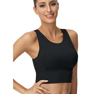 High Neck Sports Bra for Women Longline Full Coverage Sports Bras Medium Impact Padded Workout Crop Tops for Yoga Gym