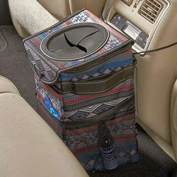 High Road StashAway Heavy Duty Car Trash Can with Rubber Lid, 3 Storage Pockets and Sturdy Panels for Stable Floor or Hanging Seatback Use (Southwest)