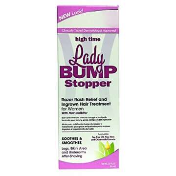 Show moreIntroducing the High Time Lady Bump Stopper Razor Rash Relief & Ingrown Hair Treatment – your ultimate solution for post-shaving comfort and skin care. Specifically designed for women, this 2 oz treatment combines the powerful benefits of tea tree oil, aloe vera, and chamomile extracts to soothe irritation and prevent unsightly razor bumps. Whether you’re shaving your legs, bikini area, or underarms, this product adeptly minimizes hair regrowth over time with regular use, ensuring a smoother, more polished finish that lasts.