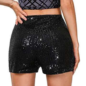 High Waisted Sequin Shorts for Women Elastic Straight Leg Sparkly Glitter Party Shorts for 1989 Taylor Concert Lover Swift Outfit Tour Eras Black