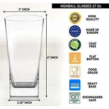 Measuring 6 inches tall and with a capacity of 16 oz, these modern highball glasses offer exceptional clarity that will impress your guests at formal parties or casual gatherings alike. Their unique style features a square base that seamlessly transitions to a rounded top, giving a contemporary feel that complements any table setting beautifully.