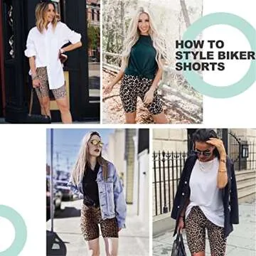 HIGHDAYS Biker Shorts for Women - High Waisted Workout Shorts with Pockets, Yoga Shorts for Athletic Running Cycling (Leopard,M )