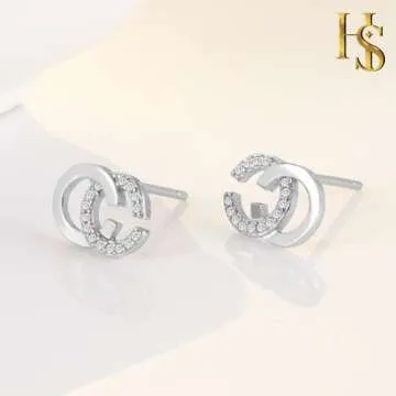 HighSpark Double C Earrings for Women | Stylish Silver Earrings with CZ Crystals