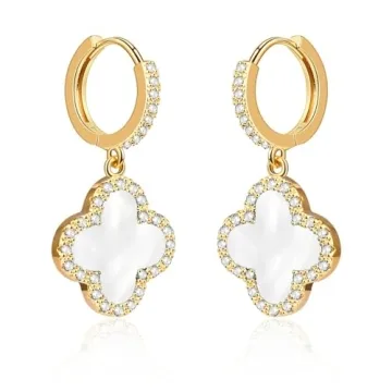 Stunning Clover Huggie Hoop Earrings for Women | Perfect Gift Idea - White