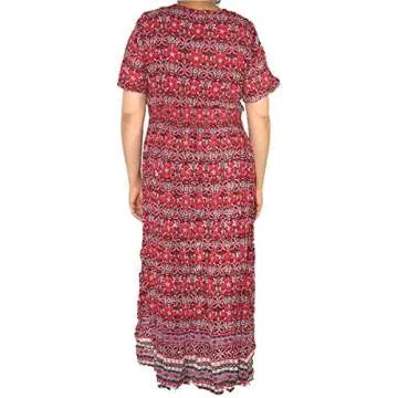 Highwaypay Women's Bohemian Gypsy Indian Boho Hippie Drawstring Neck Print Flowy Party Long Maxi Dress (Large) Red