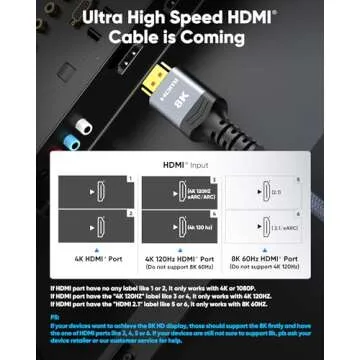 Show more Experience the future of high-definition connectivity with the Highwings 8K Ultra High Speed HDMI Cable, a product that redefines performance and efficiency. This impressive HDMI cable supports cutting-edge technology, offering compatibility with both 8K@60HZ and 4K@120HZ displays. Say goodbye to pixelation and lagging as this cable accurately processes every signal source, bringing your entertainment to life with unparalleled clarity. Whether you're gaming, streaming, or enjoying films, every detail is captured brilliantly, allowing you to experience visuals in ways you never thought possible.