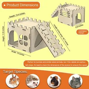 HIIMALEX Extra Large Sturdy Bunny Castle Hideout for Indoor Rabbits Play House with Stairs Round Edges Detachable Habitats for Rabbit Guinea Pig Chinchilla Hedgehog
