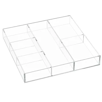Show moreTransform your cluttered drawers into a model of organization with the HIIMIEI Acrylic Drawer Organizer. Measuring 11.8” L x 11.8” W x 1.8” H, this organizer features six sections, including a smallest section of 3.9” L x 3.8” W x 1.8” H and a largest section of 11.8” L x 3.8” W x 1.8” H, designed to accommodate a variety of items from makeup to office supplies. Crafted from high-quality acrylic, this organizer is more clear and solid than plastic or resin alternatives, ensuring durability and a sleek look. Its versatile design fits perfectly into any vanity, bathroom, or office drawer, keeping your essentials neat and easily accessible. Plus, with our 90-day change or refund service, your satisfaction is guaranteed.