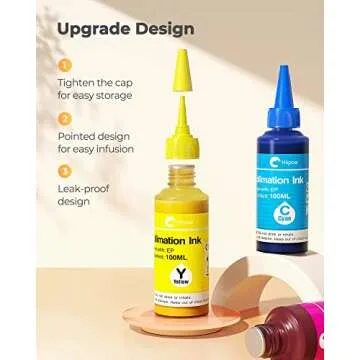 Hiipoo Sublimation Ink Refilled Bottles with Heat Tape Refill for ET2400 XP4105 XP4100 ET2720 ET2760 ET2750 ET4800 ET-2800 ET-2803 ET-2850 Inkjet Printers Heat Press Transfer on Mugs T-Shirts