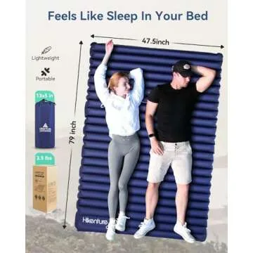 Hikenture Double Sleeping Pad for Camping, Ultralight 4" Extra-Thick Camping Mattress 2 Person, Inflatable Backpacking Sleeping Mat, Hiking Air Mattress for Tent (Foot Pump)